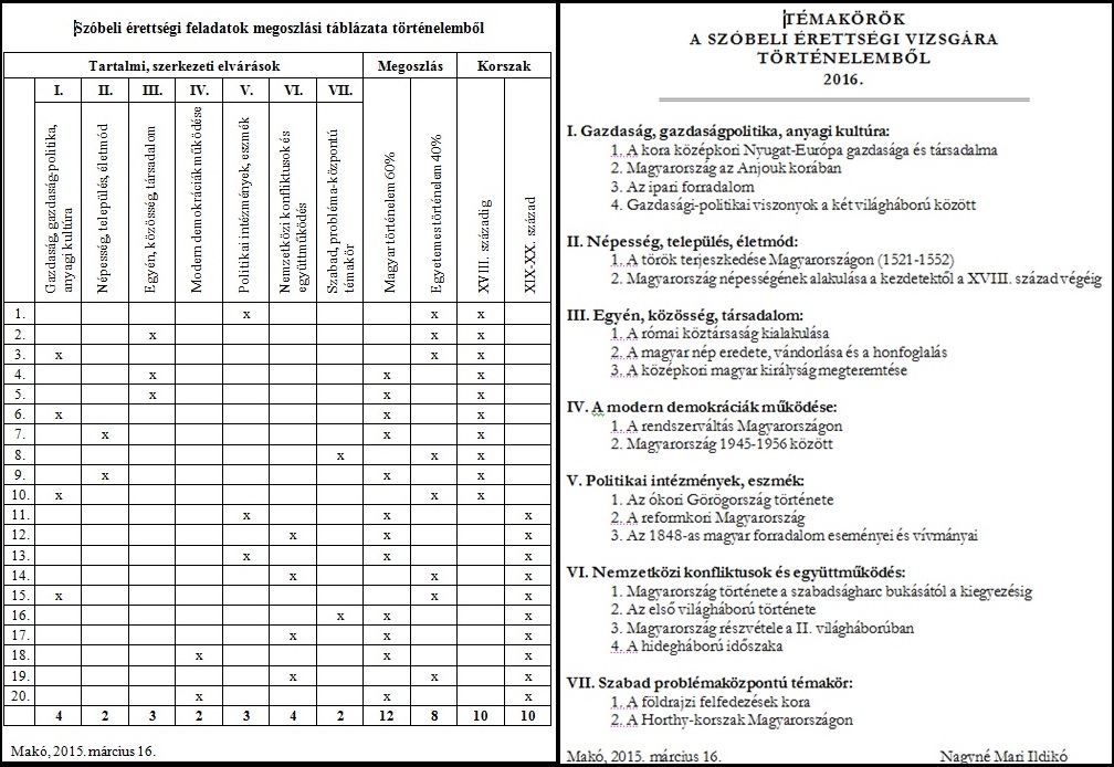 2. Megoszlási táblázat szóbelire => újítás: egy új témakör került a 7 témakör közé