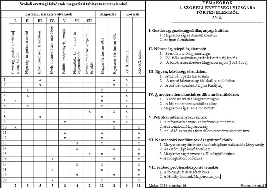 3. Történelem szóbeli tételek (20% -nak, 4 db -nak évente cserélődnie kell)